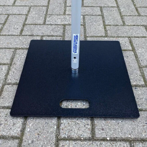 Beachflag grondplaat voor de bevestiging van je beachflag. Gemaakt van staal en voorzien van een rond draaiende as (rotator) zodat je beachflag kan meedraaien met de wind. Geschikt voor binnen en buiten voor vlaggen tot 3 meter.