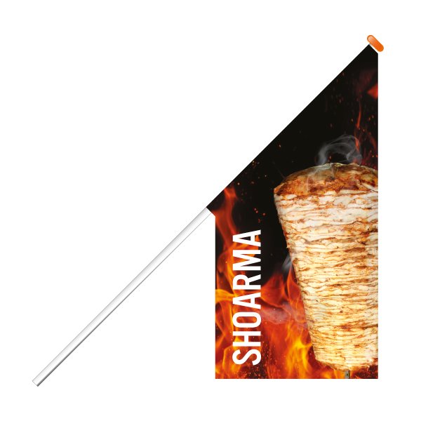 Met deze shoarma kioskvlag weet je zeker dat je gezien wordt. Hang de kioskvlag op aan de gevel en ze trekken de volle aandacht.